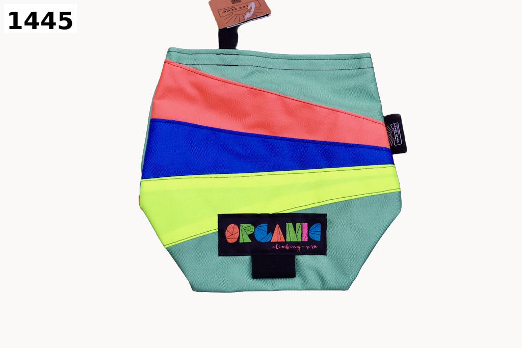 Magnifiques sacs à magnésie colorés et lumineux. Idéals pour le bloc. Légers, faciles à plier et à glisser entre vos crash pads préférés. Leur large ouverture permet de tremper facilement les deux mains dans la magnésie avant vos meilleurs enchaînements. Une poche latérale zippée accueille vos brosses, vos clés ou un rouleau de strap, bien rangés à portée de main. Comme tous les produits Organic, chaque sac est fabriqué à la main, avec de l’énergie solaire, et est absolument unique.